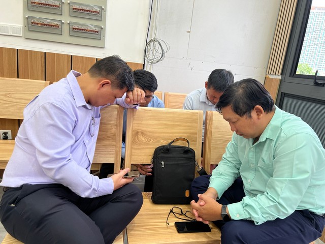 Các tôi tớ Chúa: Mục sư Trần Huỳnh Quốc Việt, UV BĐD – Mục sư Nguyễn Văn Thiện, UV BĐD – Mục sư Nguyễn Hùng Dũng, Trưởng KV2, thông báo công việc Chúa.
