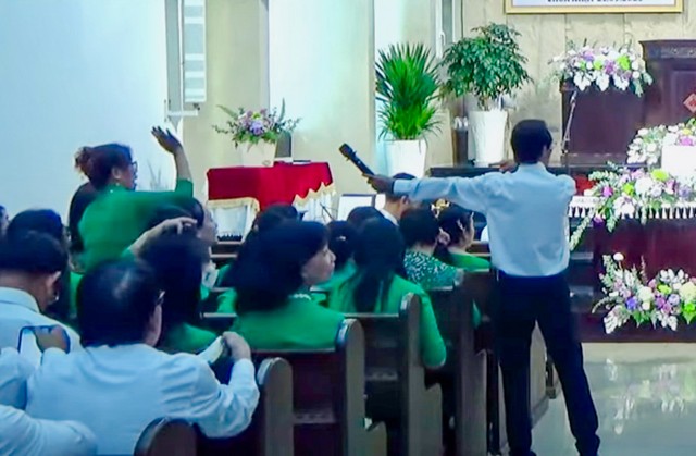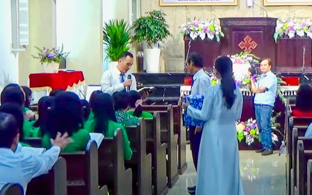 Trong phần thờ phượng, các ban Trung Tráng niên lần lượt tôn vinh Chúa sau phần video clip giới thiệu sinh hoạt của mỗi ban tại Hội Thánh.