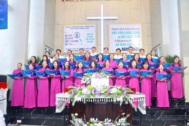 Trong phần sinh hoạt thông công, các ban lần lượt thực hiện các hình thức thi đua đố Kinh Thánh, đố Thánh ca