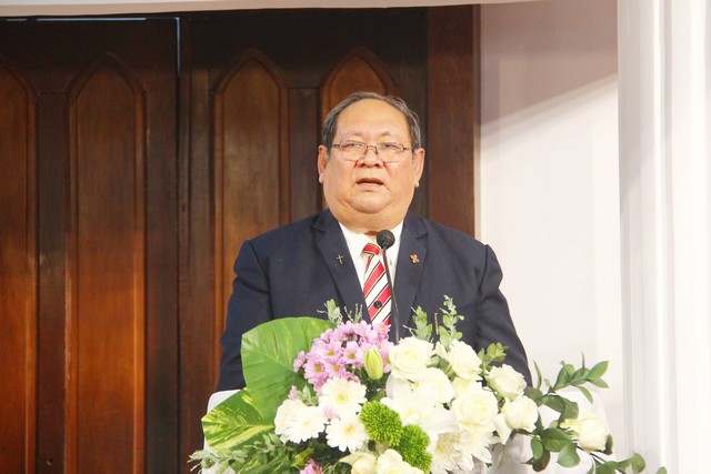 Mục sư Nguyễn Hữu Bình, Tổng Thư ký TLH – UV HĐTV&TPMS KV II, trao tay hữu thông công