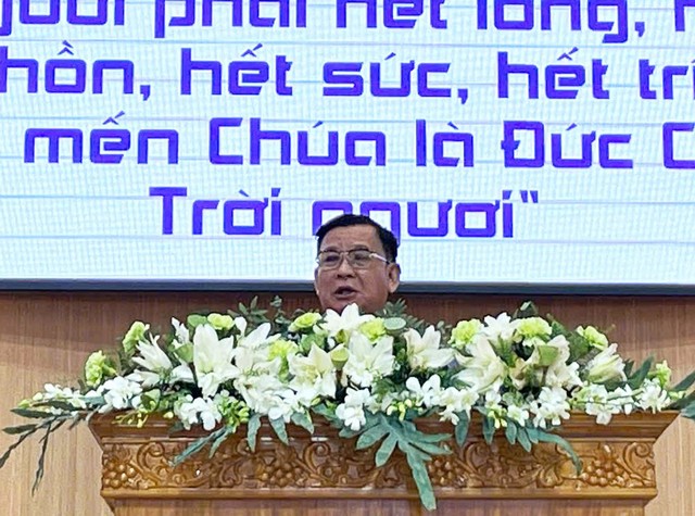 Mục sư Nguyễn Bình Tín - UV TLH - rao giảng lời Chúa khai mạc kỳ trại