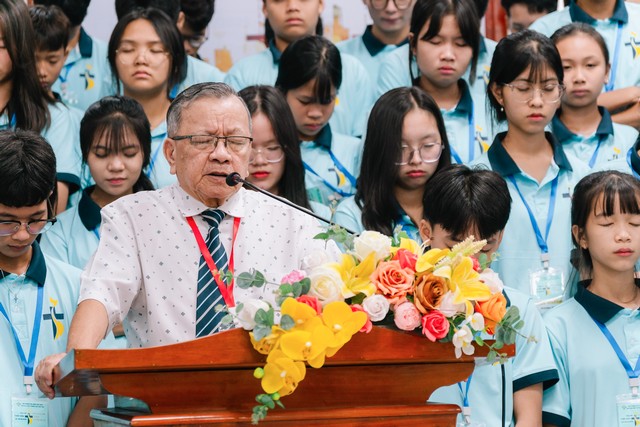 Mục sư Nguyễn Ngọc Nhỏ, Trưởng BĐD, giảng bồi linh trong buổi khai mạc nhằm định hướng tâm linh cho các trại sinh