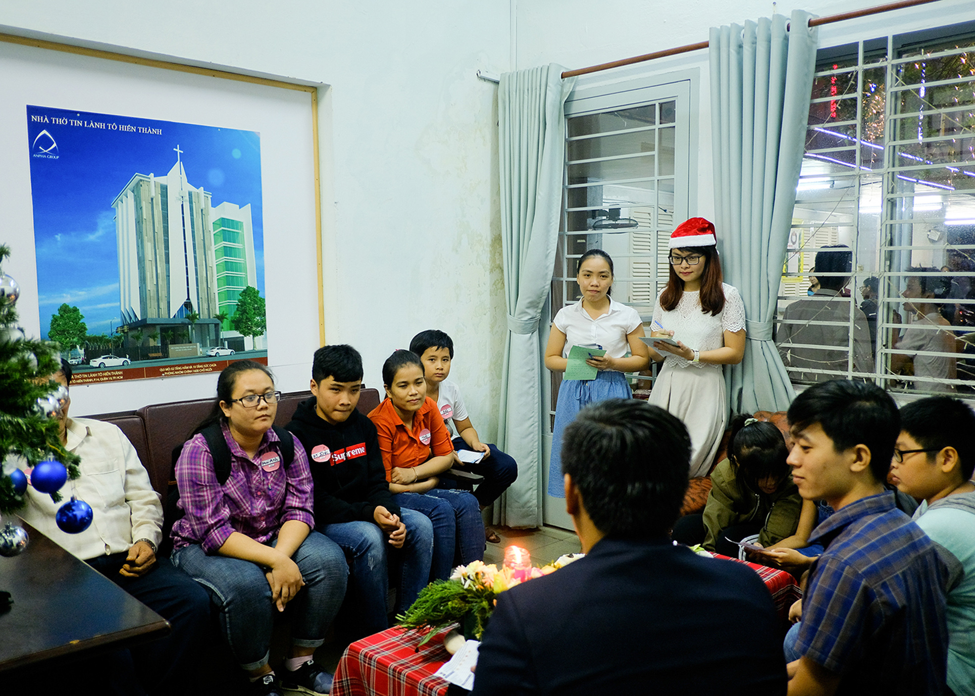 HTTLVN.ORG – Hòa trong niềm vui mừng Chúa Giáng sinh, lúc 19 giờ ngày 13/12/2017 Ban Thanh niên Hội Thánh Tin Lành Tô Hiến Thành đã tổ chức chương trình giới thiệu Phúc Âm dưới hình thức trà đàm với chủ đề “Cốc, Cốc” nương theo lời Chúa trong Khải Huyền 3:20 ”Nầy Ta đứng ngoài cửa mà gõ; nếu ai nghe tiếng Ta mà mở cửa cho, thì Ta sẽ vào cùng người ấy, ăn bữa tối với người, và người với Ta”.