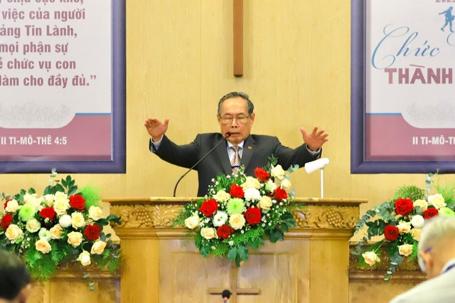 Mục sư Nguyễn Ngọc Thuận, Phó Tổng Thủ quỹ TLH, chúc phước