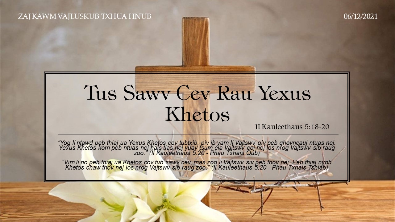 Tus Sawv Cev Rau Yexus Khetos – 06/12/2021