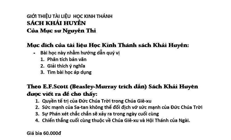 UB. CĐGD: GIỚI THIỆU TÀI LIỆU HỌC KINH THÁNH: SÁCH KHẢI HUYỀN