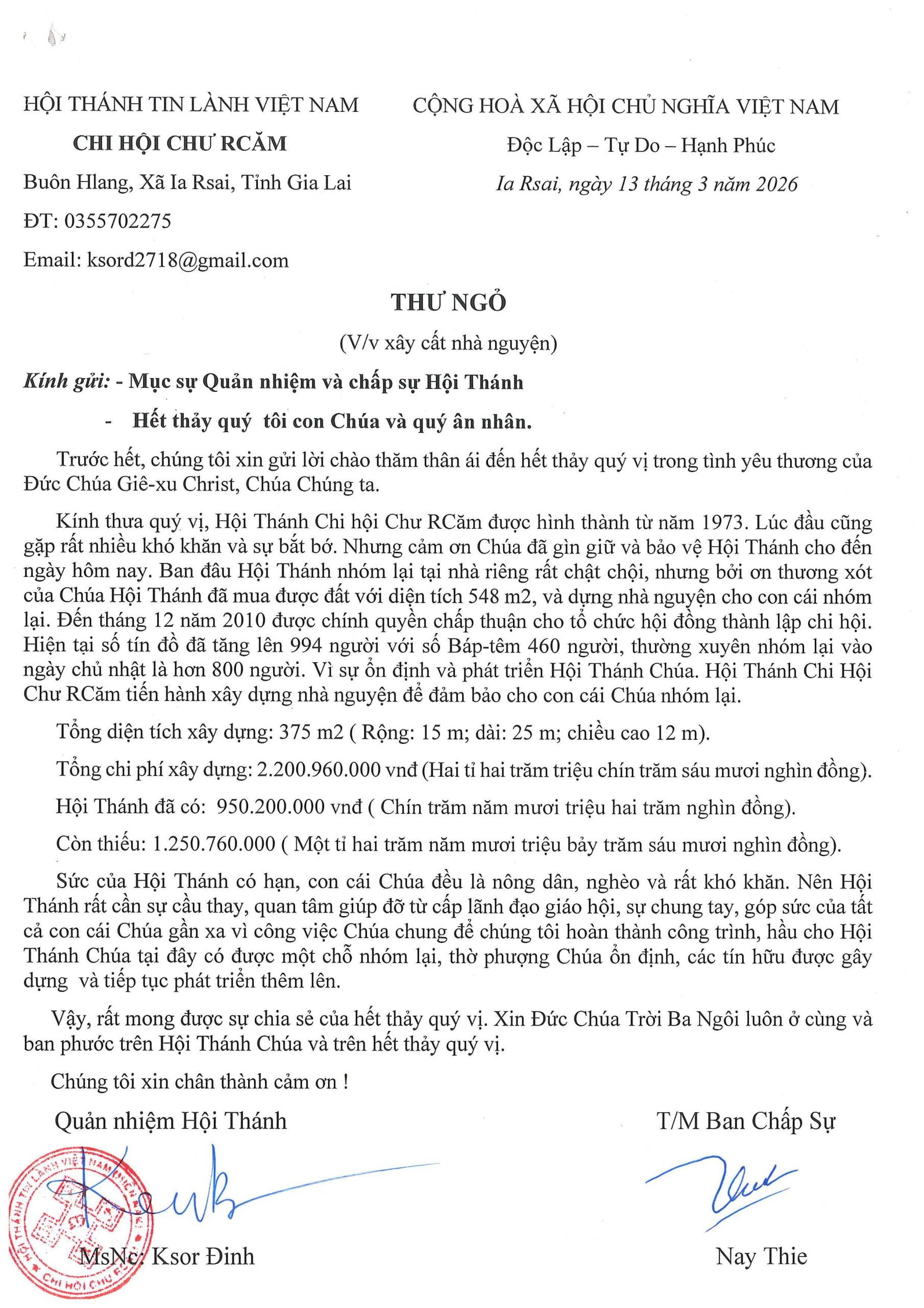 Nhu Cầu Xây DựngUB. Kiến Thiết UB. Kiến Thiết: Thư ngỏ V/v Xây Cất Nhà Thờ Chư Rcăm – Gia Lai 25/03/2026 0 Hội chúng Nhà thờ cũ Xây móng nhà thờ mới