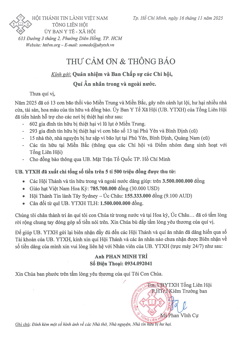 UB.YTXH – Thư Cảm Ơn & Thông Báo