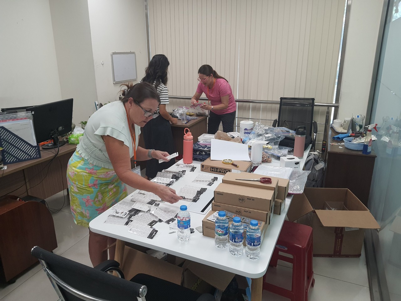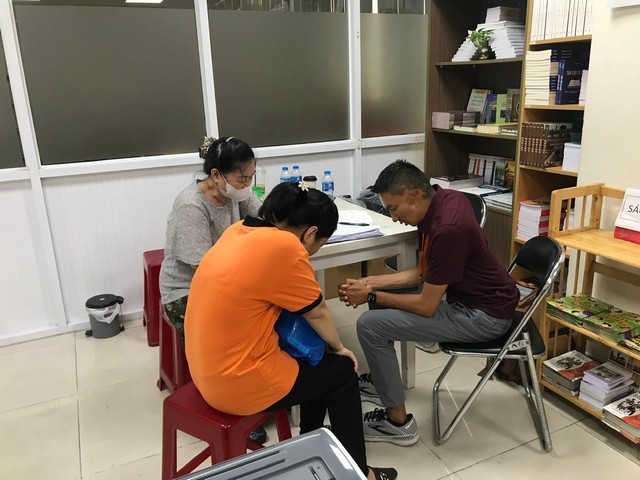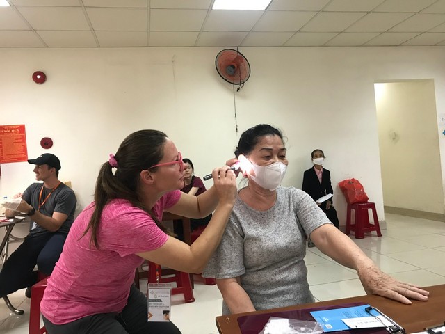 Qui trình làm việc của đoàn rất cụ thể: hướng dẫn đăng ký, nhận số thứ tự, thăm khám đo thính lực, gắn máy trợ thính, kiểm tra chất lượng thính giác… Đặc biệt, có nhân viên tư vấn thuộc linh và cầu nguyện cho các nhu cầu của con cái Chúa.