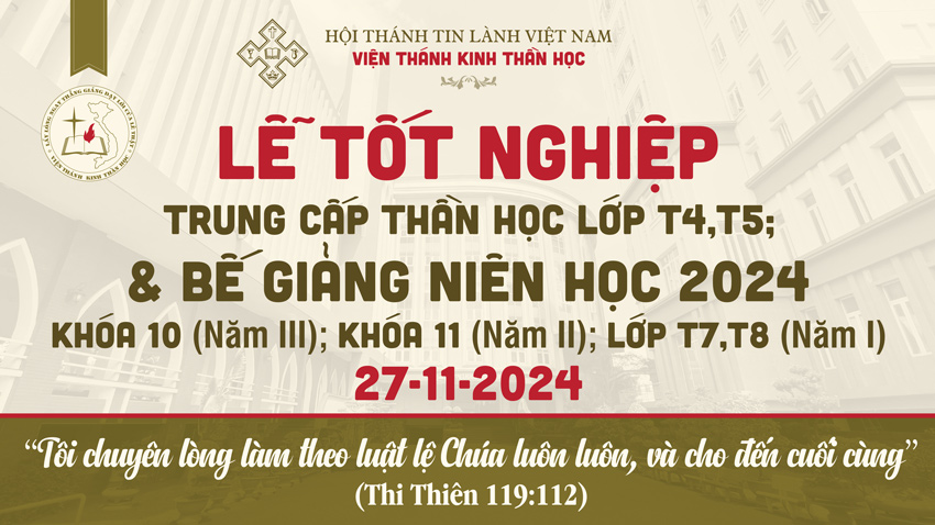 V/v Truyền Hình Trực Tuyến Chương Trình Lễ Tốt Nghiệp Trung Cấp Thần Học Lớp T4, T5 & Bế Giảng Niên Học 2024 Khóa 10; Khóa 11; Lớp T7, T8