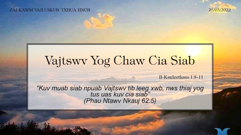 Vajtswv Yog Chaw Cia Siab – 25/3/2022