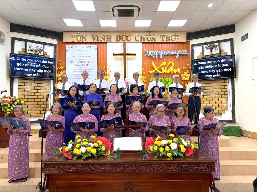 5-1 Ban Cao niên Hội Thánh Quới Sơn tôn vinh Chúa bài hát Vững Bước Theo Ngài