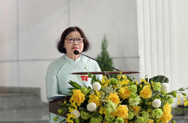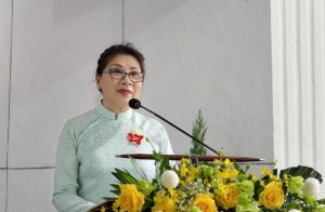 Bà Lê Thị Minh Chánh, đại diện Ban Ẩm thực HT Vĩnh Long, giới thiệu ý nghĩa và hướng dẫn chương trình