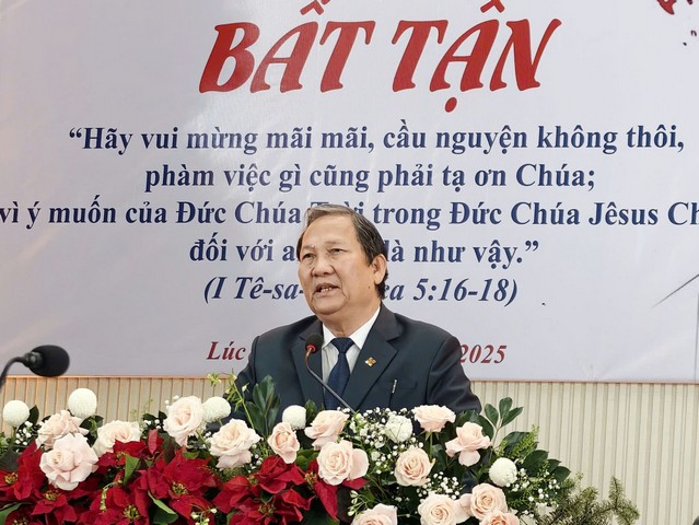 Mục sư Trương Thanh Thiên Ân, Trưởng BĐD, đã có lời chào mừng và thông tin định hướng công việc Chúa trong năm mới 2026.
