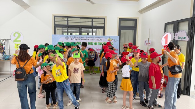 Sau thì giờ thờ phượng Chúa trong nhà thờ, dưới sự hướng dẫn của Đội Làm việc Mục vụ Thể thao tỉnh Vĩnh Long, các em thiếu nhi được chia thành các tổ để sinh hoạt thi đua qua các trò chơi trạm, bóng đá. Phần thưởng thi đua là những phiếu đổi quà để tham gia hội chợ ẩm thực và gian hàng đồ chơi.