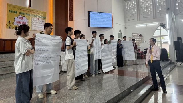 Các bạn thanh niên được chia nhóm thuyết trình bài học