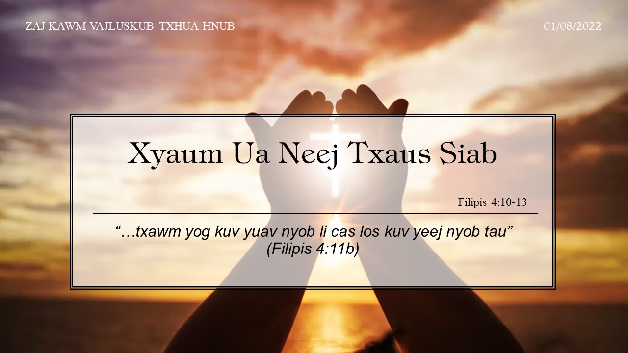 Xyaum Ua Neej Txaus Siab – 1/8/2022