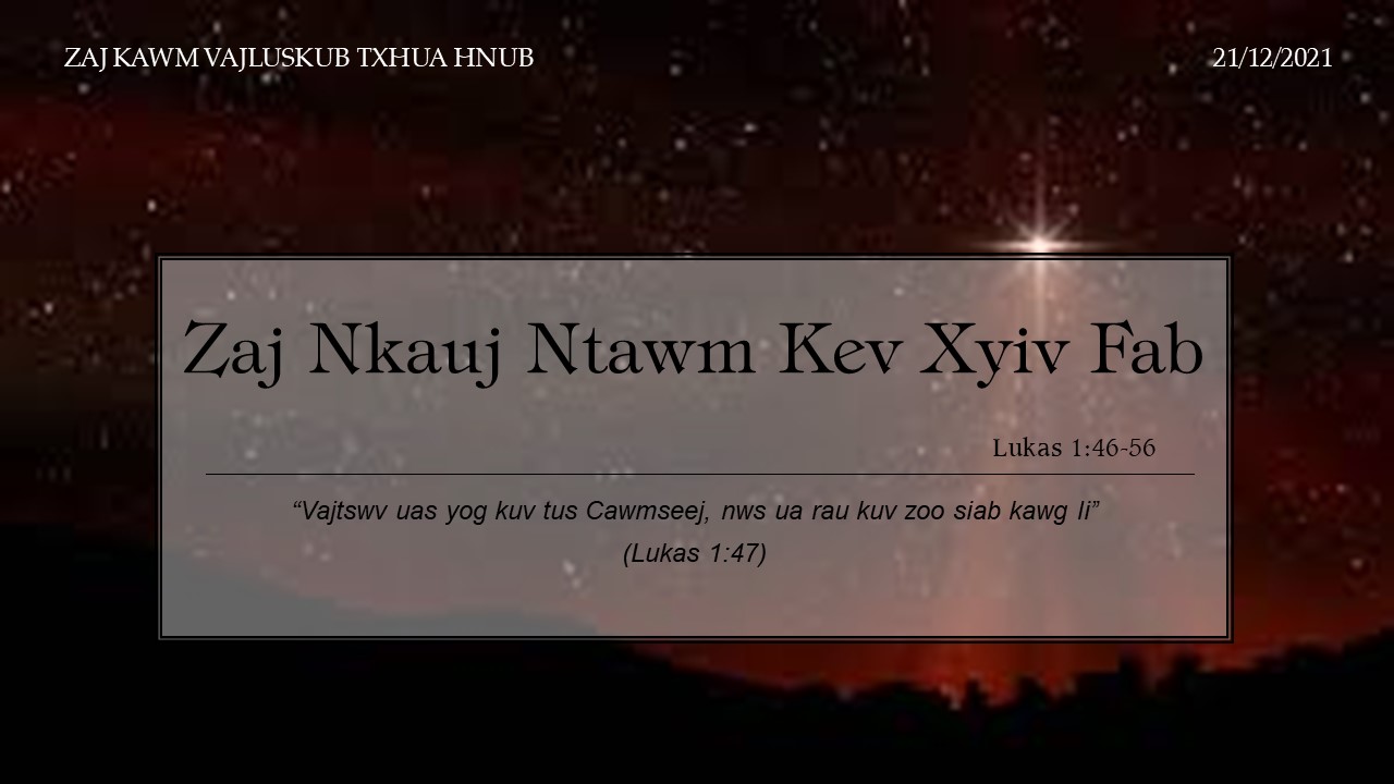 Zaj Nkauj Ntawm Kev Xyiv Fab – 21/12/2021